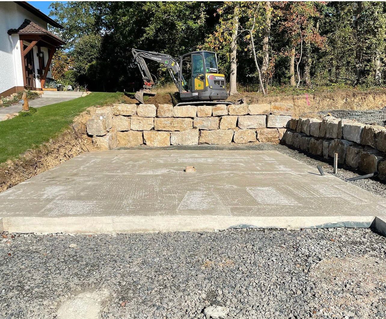 Wir führen Erdarbeiten für Bodenplatten und Fundamente sowie andere Gartenarbeiten durch.